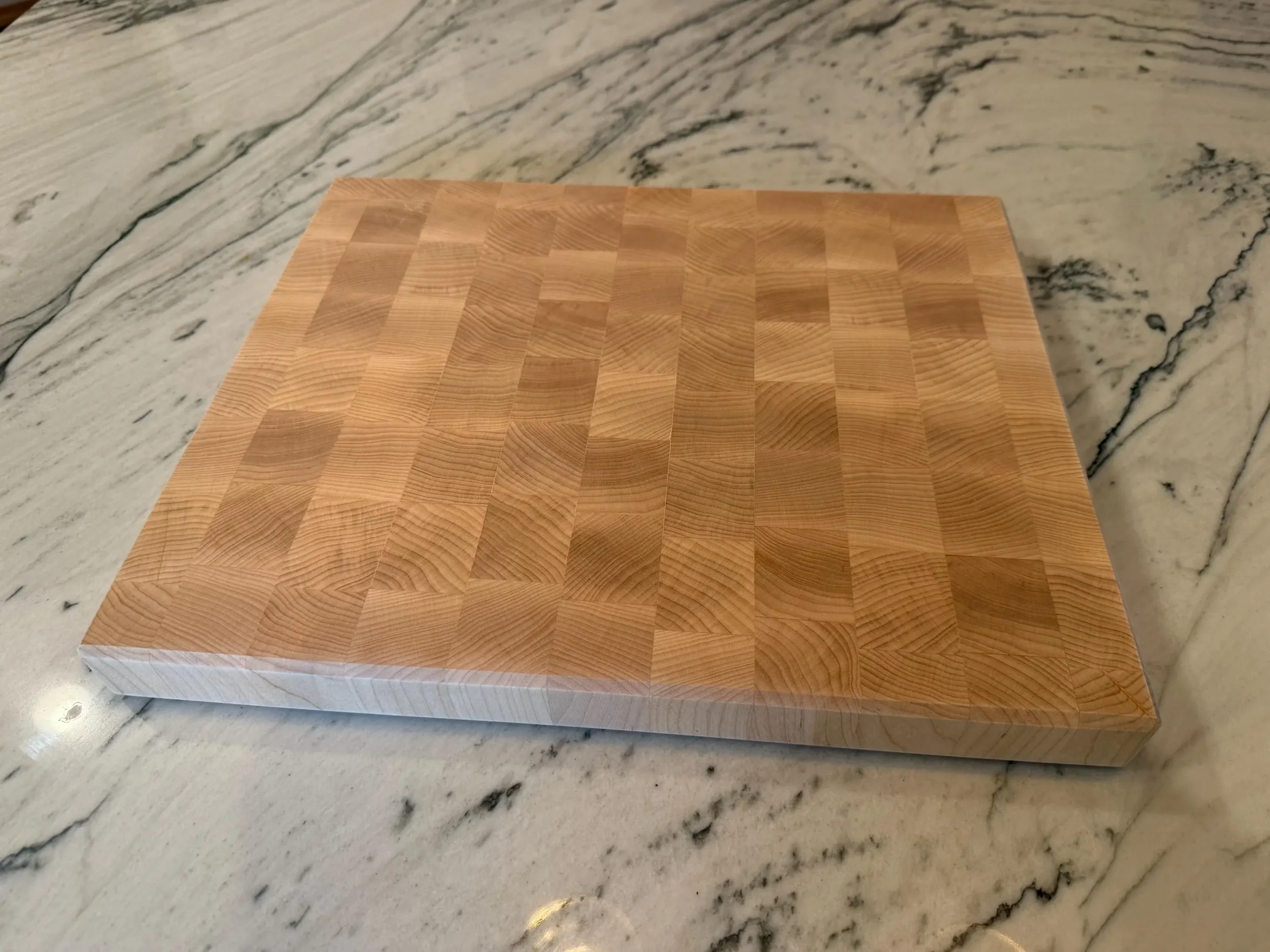 The Professional Series cutting board is made entirely from end-grain maple, a durable and reliable hardwood well-suited for everyday kitchen use. The light, neutral tone gives the board a clean, classic looks that fits into a wide range of kitchen styles.